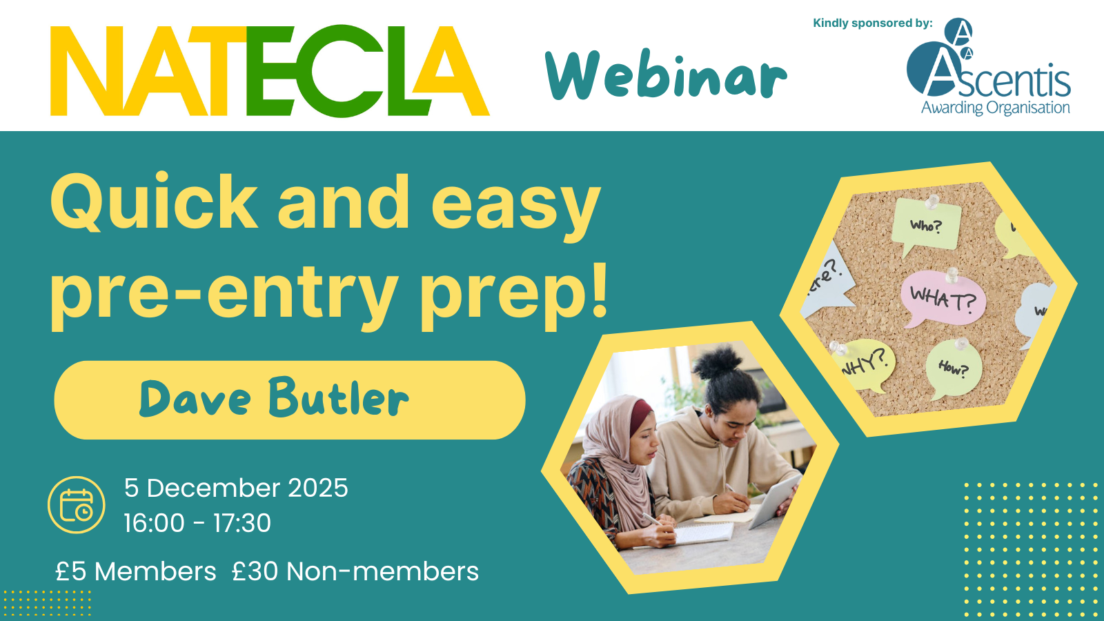 Webinars cost £30 per person, with NATECLA members paying a reduced rate of £5.